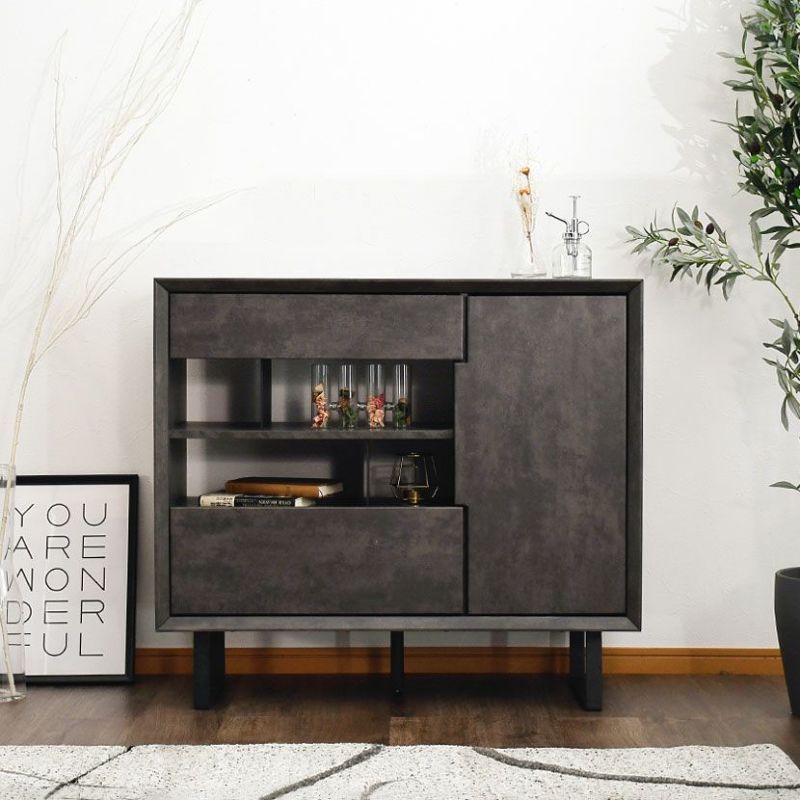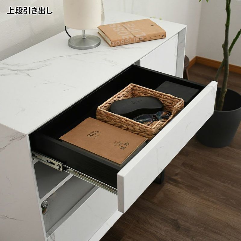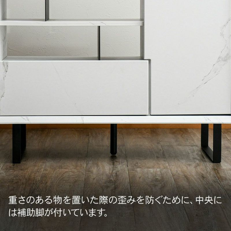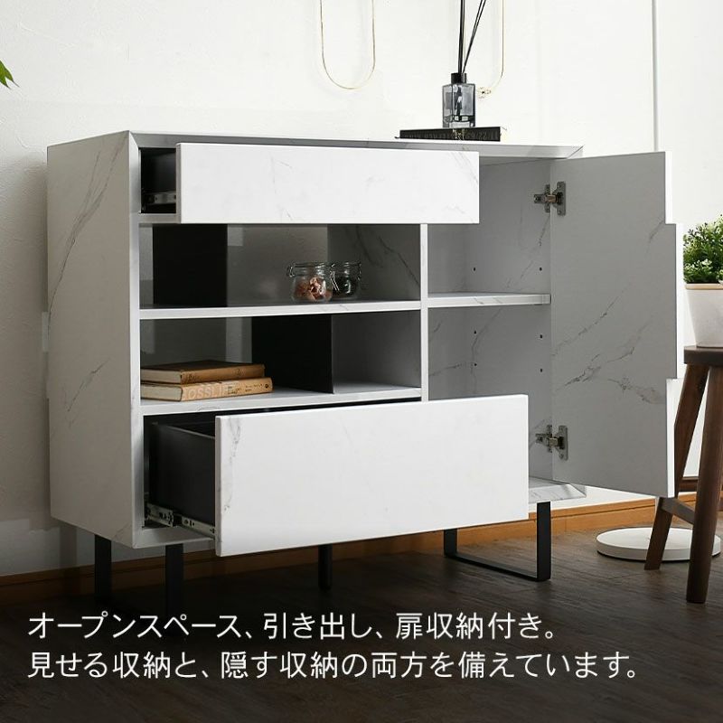 【設置無料】幅90cm サイドボード 大理石調 収納 引き出し 開き扉 脚付き ラック リビングボード リビング収納 間仕切り キャビネット おしゃれ モダン 白 ホワイト グレー ルンバブル