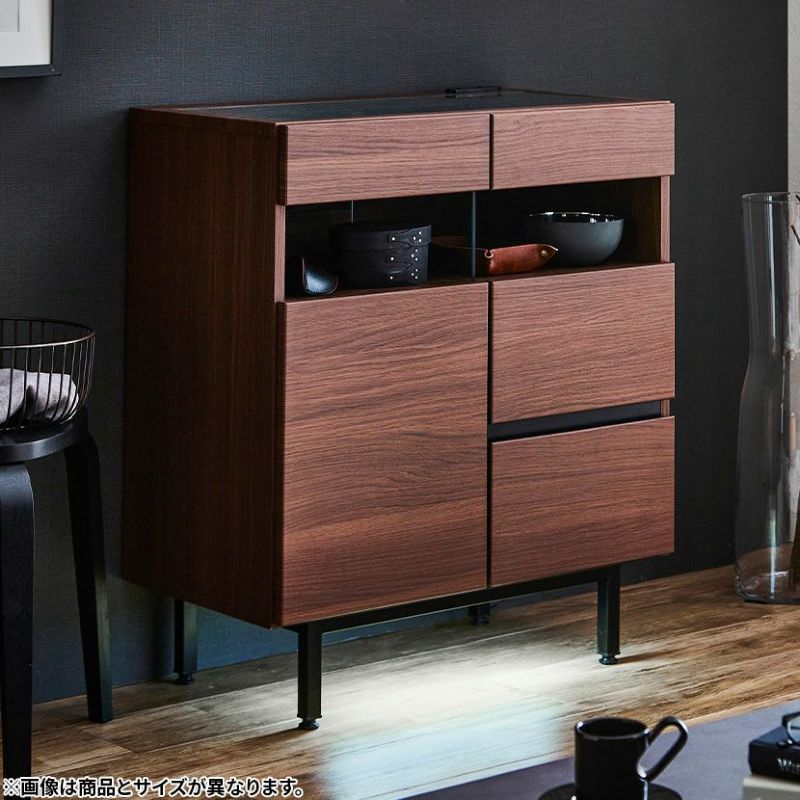 ショーケースのようなディスプレイ収納と、隠す収納ができるサイドボードです。