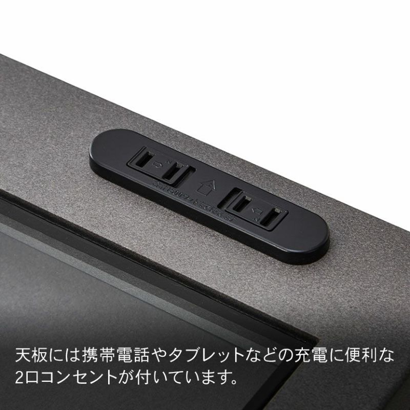 天板の右端に、携帯電話やタブレットなどの充電に便利な、2口コンセントが付いています。