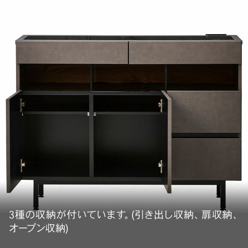 3種の収納が付いています。(引き出し収納、扉収納、オープン収納)