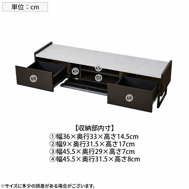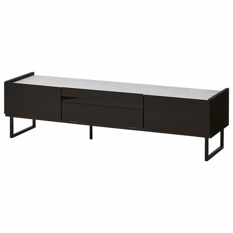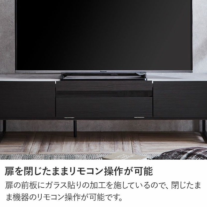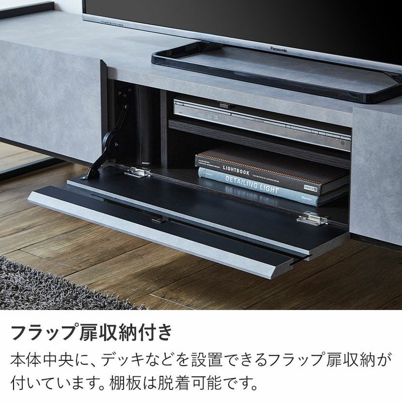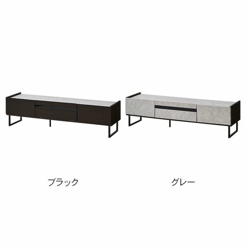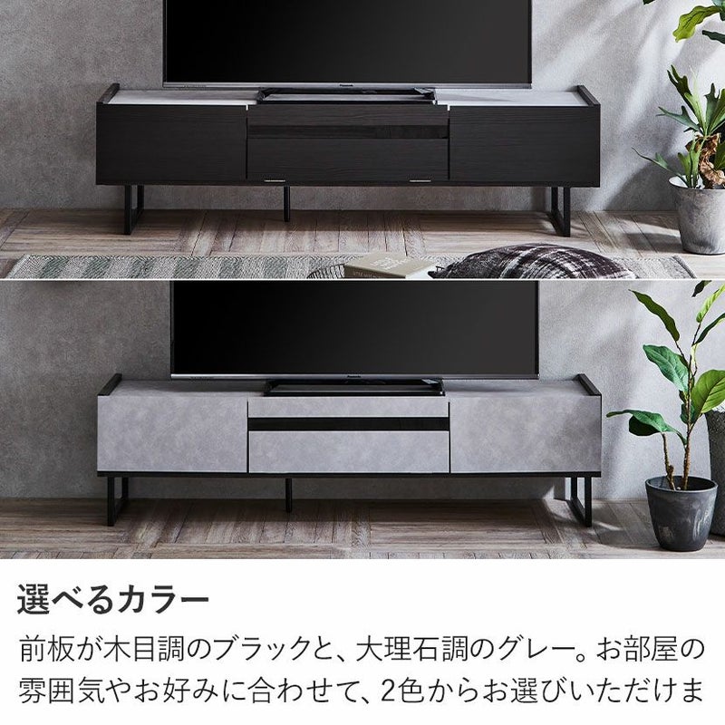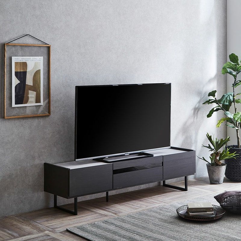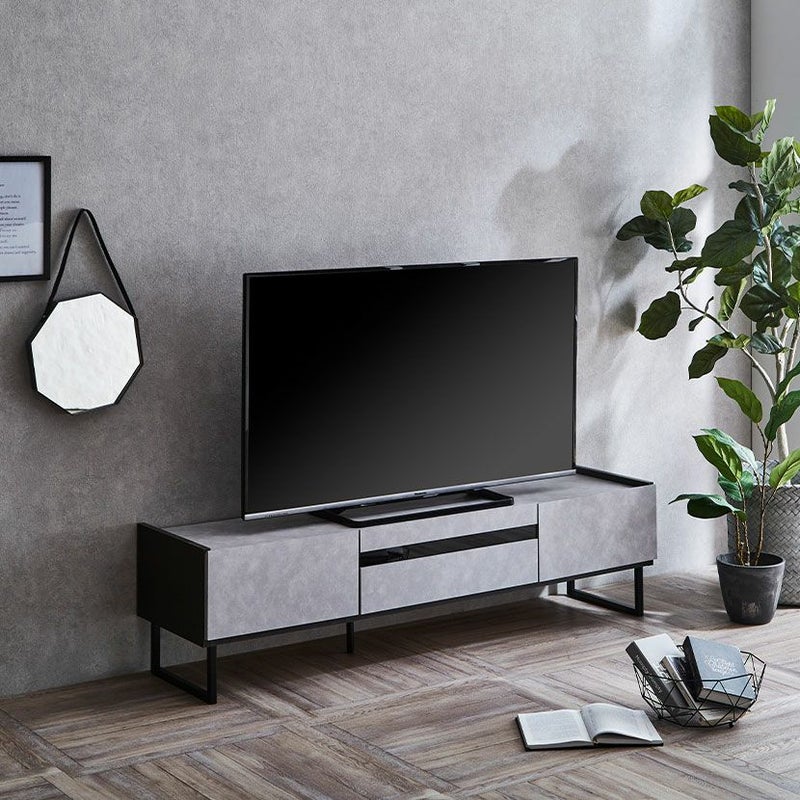 ブラック×グレーの無彩色で統一した、シンプルモダンな印象のテレビボード。