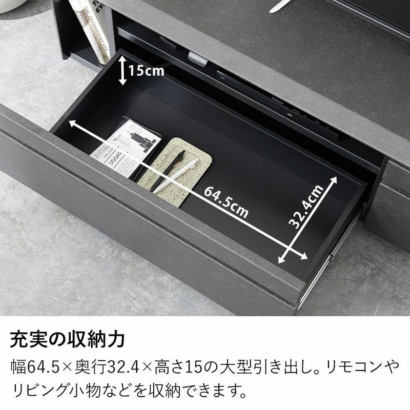 引き出しは幅64.5×奥行32.4×高さ15cmの大型サイズです。リモコンやリビング小物などをたっぷり収納できます。