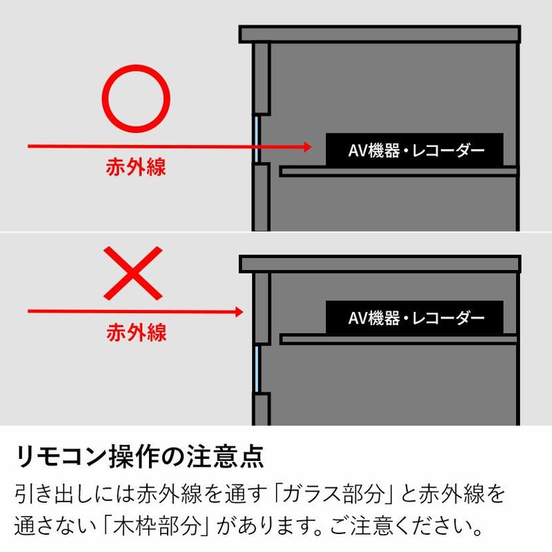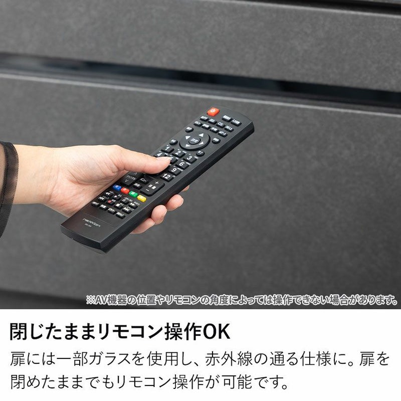 扉の一部にはガラスを使用し、赤外線が通る仕様になっています。これにより、扉を閉めたままでも内部に置いた機器のリモコン操作が可能です。