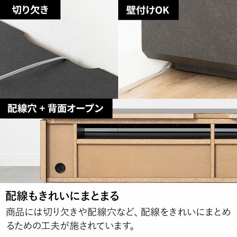 商品背面には、切り欠きや配線穴など、AV機器の配線をきれいにまとめるための様々な工夫が施されています。