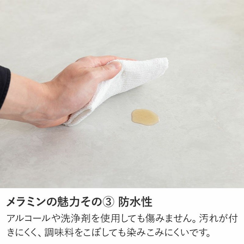 ●熱、傷、汚れに強いメラミン貼りの天板を採用しています。