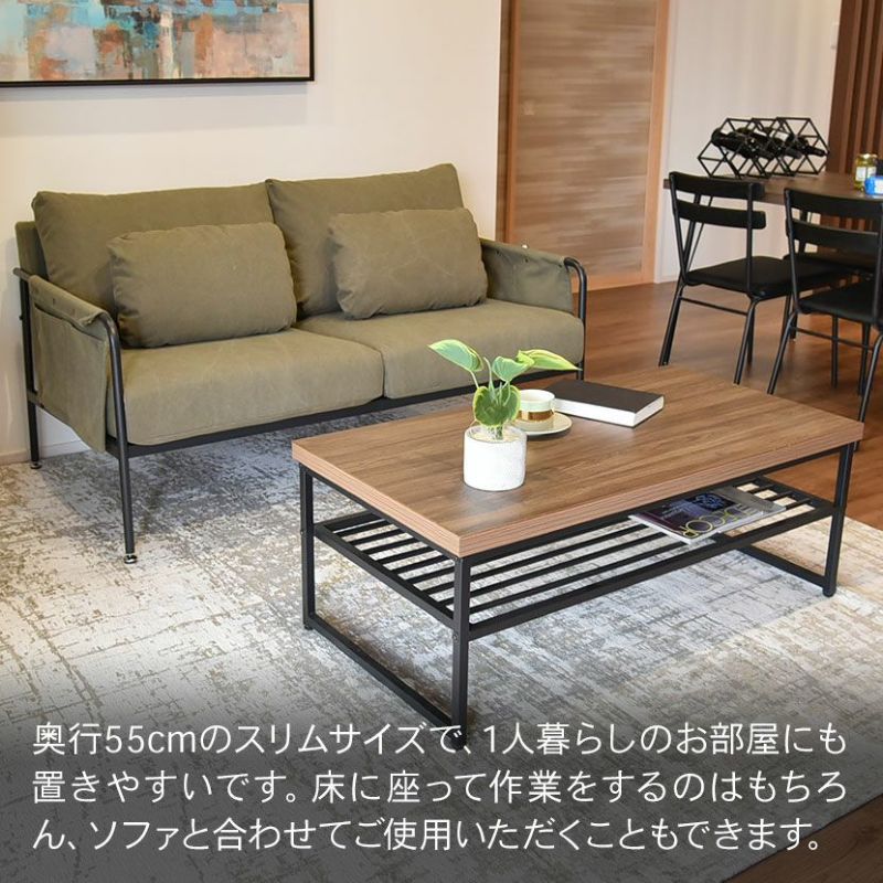 床に座って作業をするのはもちろん、ソファと合わせてご使用いただくこともできます。