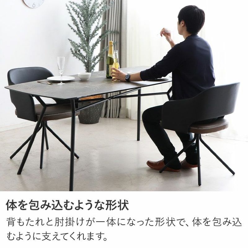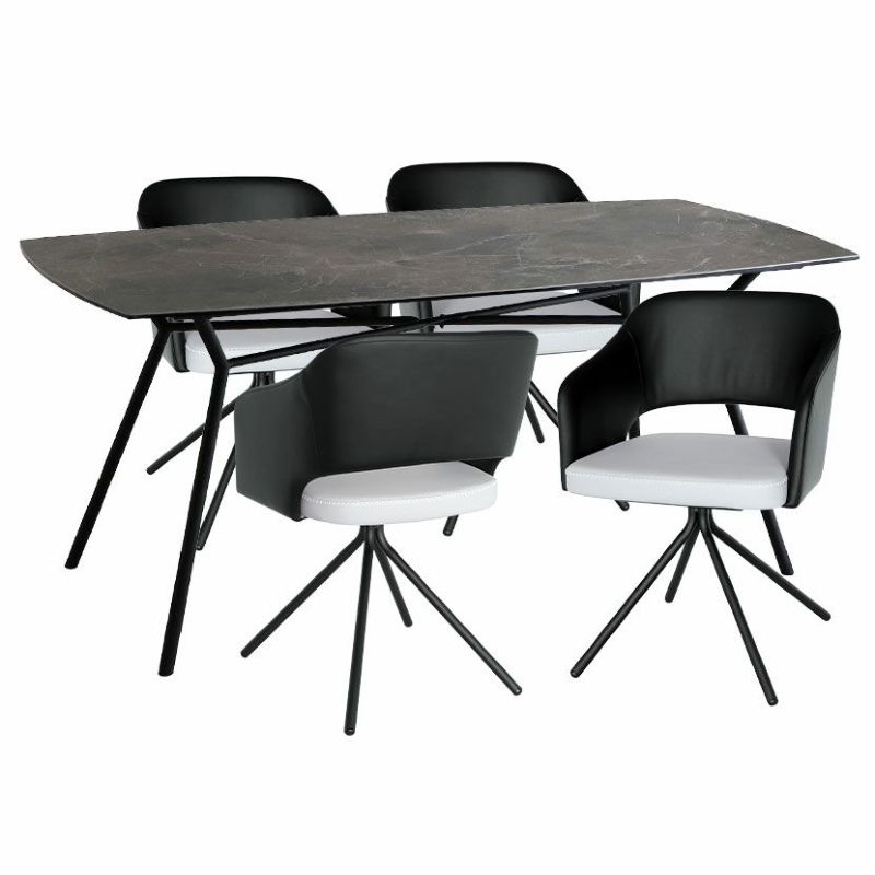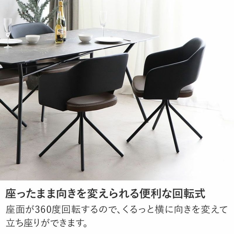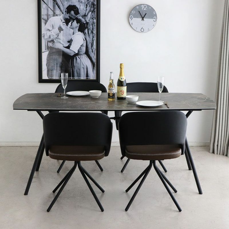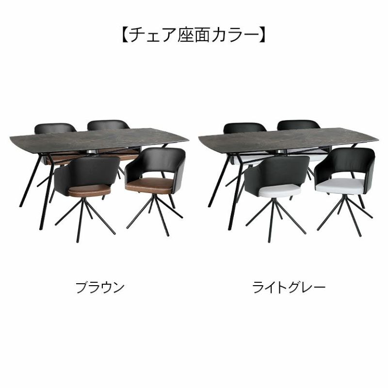 4人用 ダイニングテーブルセット 5点 食卓テーブル セラミック天板(ブラック) ダイニングチェア 回転 肘付き 食卓椅子 おしゃれ モダン (幅170cm 長方形 テーブル×1 チェア×4)
