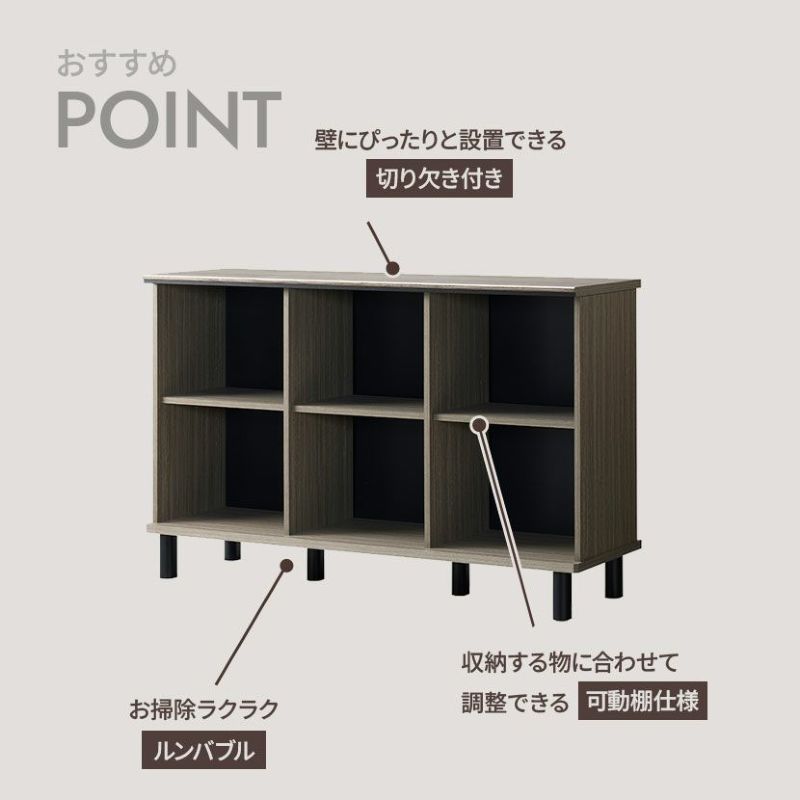 3枚の可動棚は、5段階で調整可能。6.4cmピッチで細かく高さを変えられるため、収納したい物のサイズに合わせて自由にレイアウトできます。