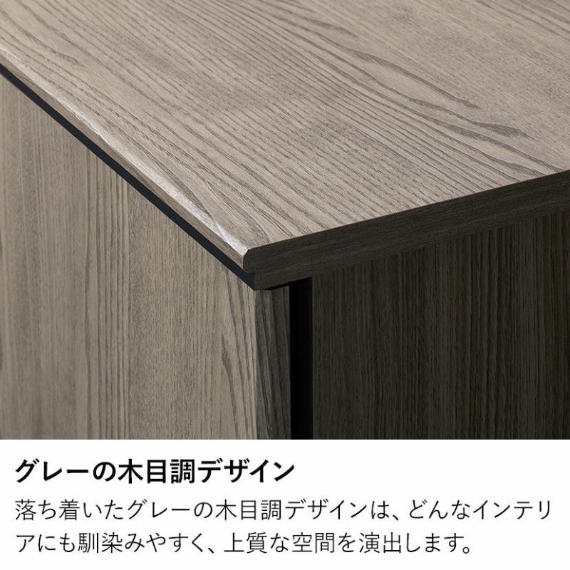 落ち着いたグレーの木目調デザインは、どんなインテリアにも馴染みやすく、お部屋に洗練された印象を与えます。