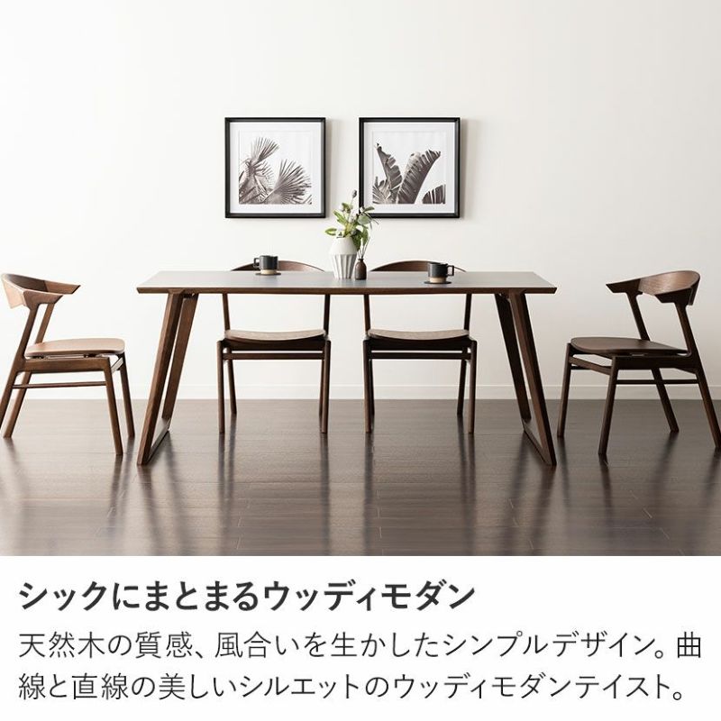 天然木の質感、風合いを生かしたシンプルデザイン。曲線と直線の美しいシルエットのウッディモダンテイストのダイニングテーブルです。
