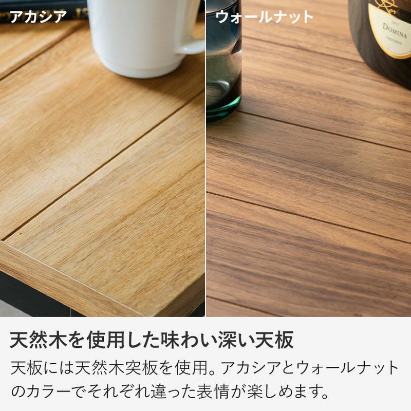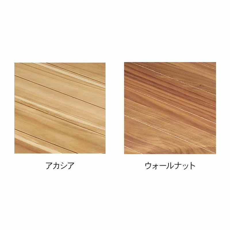| 材質 | 天板(アカシア) / アカシア突板 天板(ウォールナット) / ウォールナット突板 脚部 / ラバーウッド 塗装 / オイル塗装(下地)、PU塗装(上塗り) |