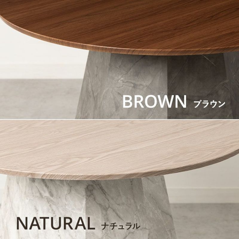温かみのある木目調の天板と、重厚感のある大理石調の脚を組み合わせました。