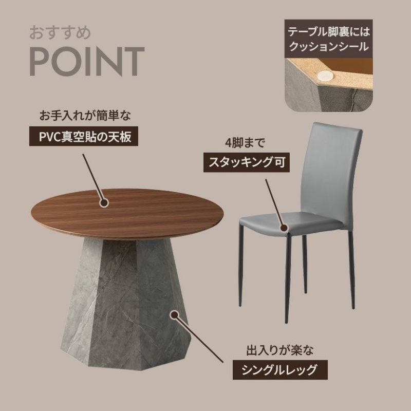 ●空間を引き締める石目調の脚部