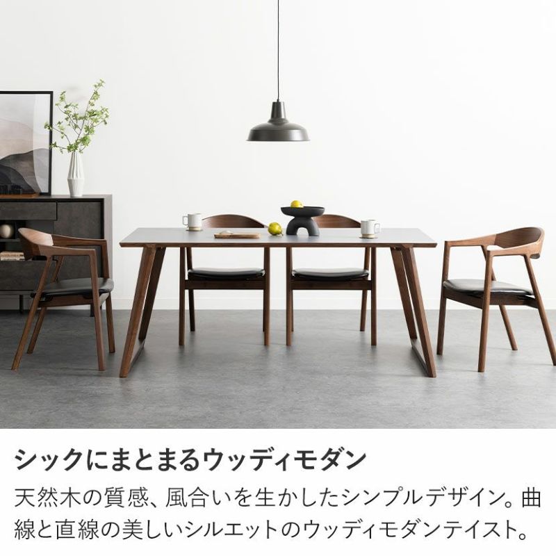 天然木の質感、風合いを生かしたシンプルデザイン。曲線と直線の美しいシルエットのウッディモダンテイストのダイニングテーブルです。