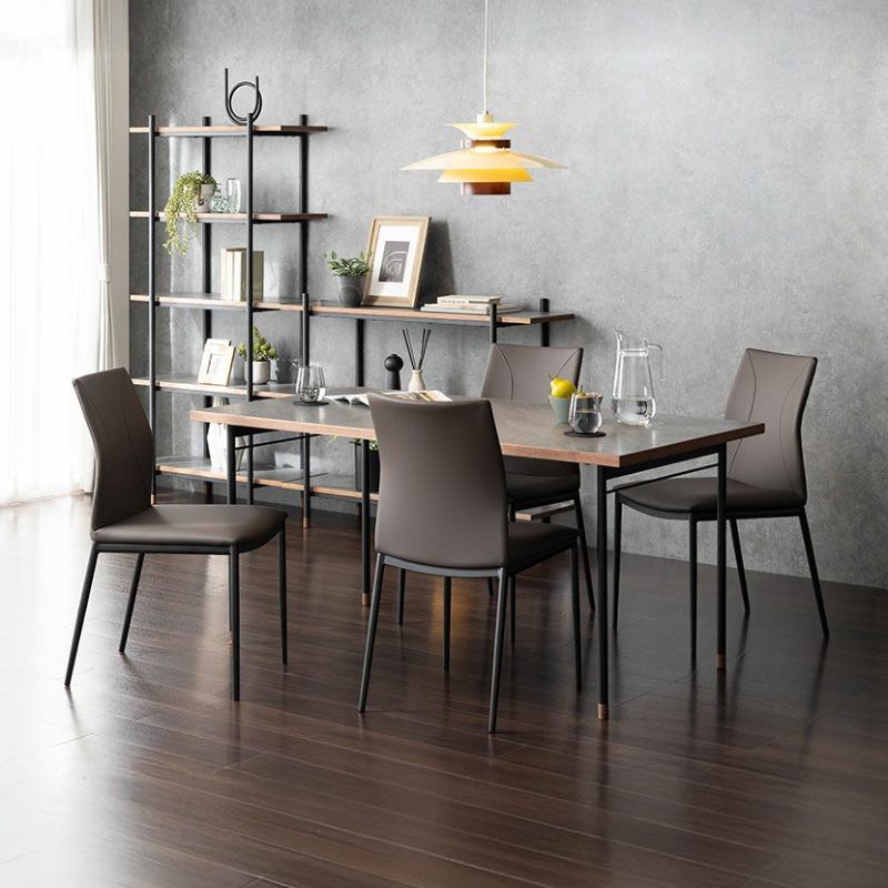 低圧メラミン化粧板のテーブルと合成皮革のチェアを組み合わせたモダンテイストのダイニングセットです。