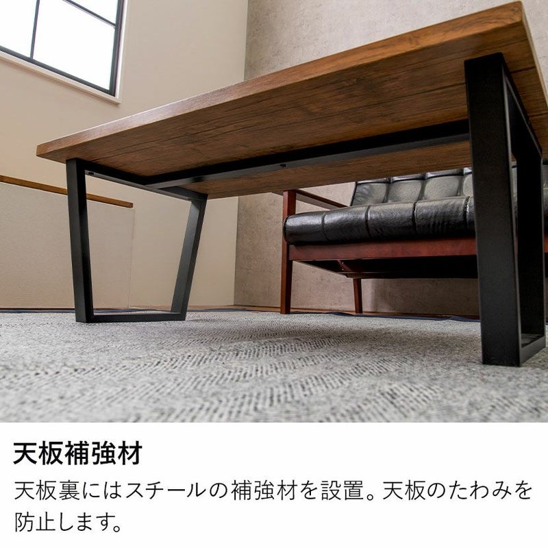 天板裏にはスチールの補強材を設置。天板のたわみを防止します。