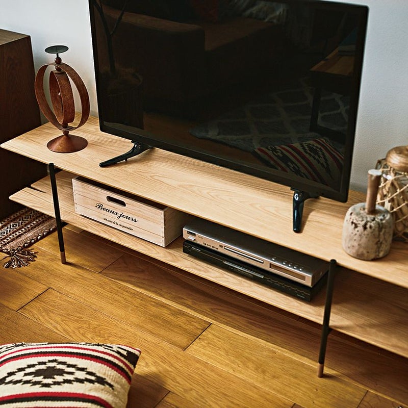 ~55型のテレビをしっかりと設置できる広々とした天板スペース。リビングの主役にふさわしいサイズ感です。