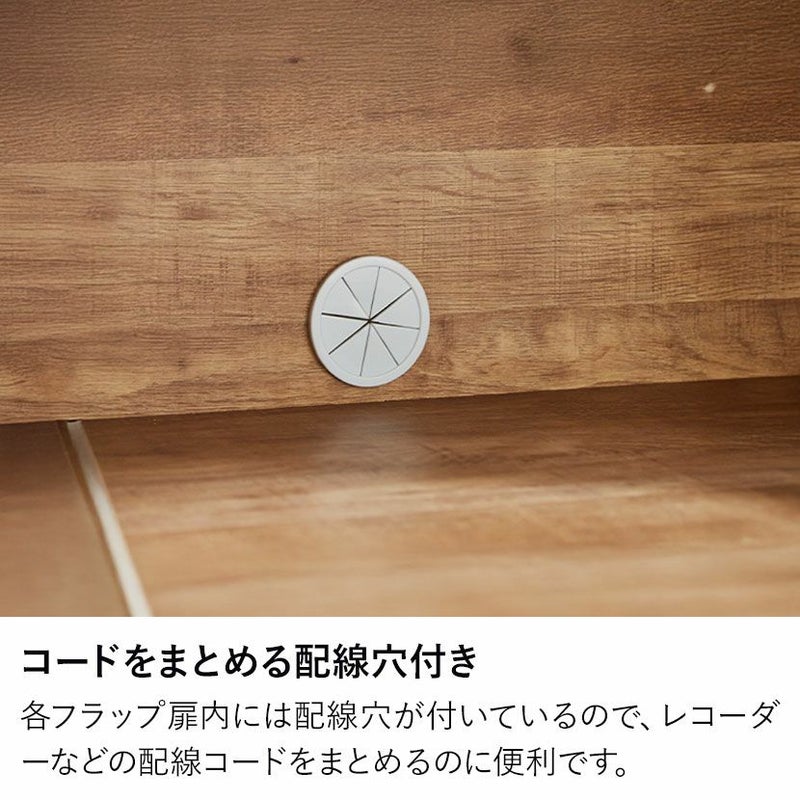 各フラップ扉内には配線穴が付いているので、レコーダーなどの配線コードをまとめるのに便利です。
