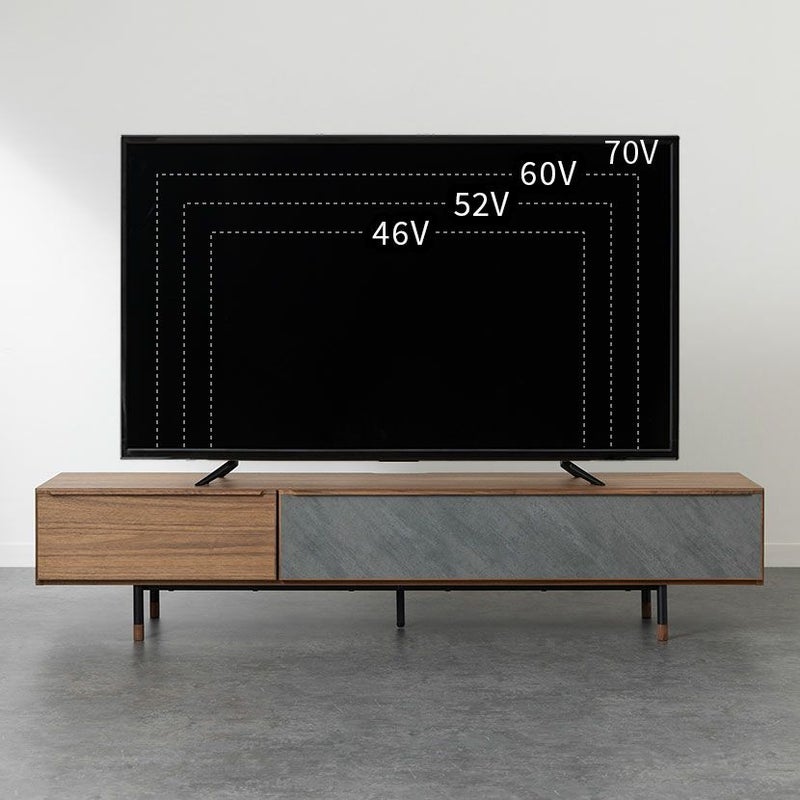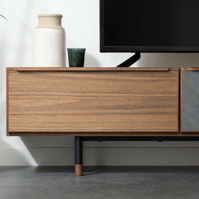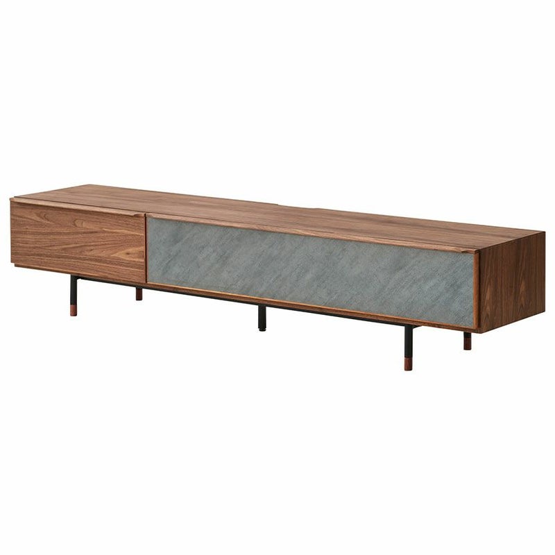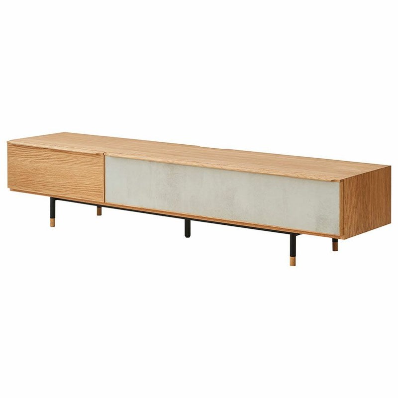 天然木突板とメラミンのMIXが特徴的なテレビボード。シンプルでモダンなデザインです。