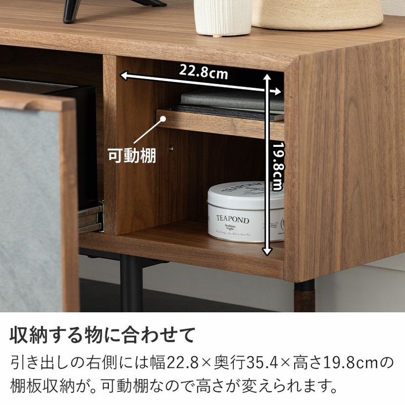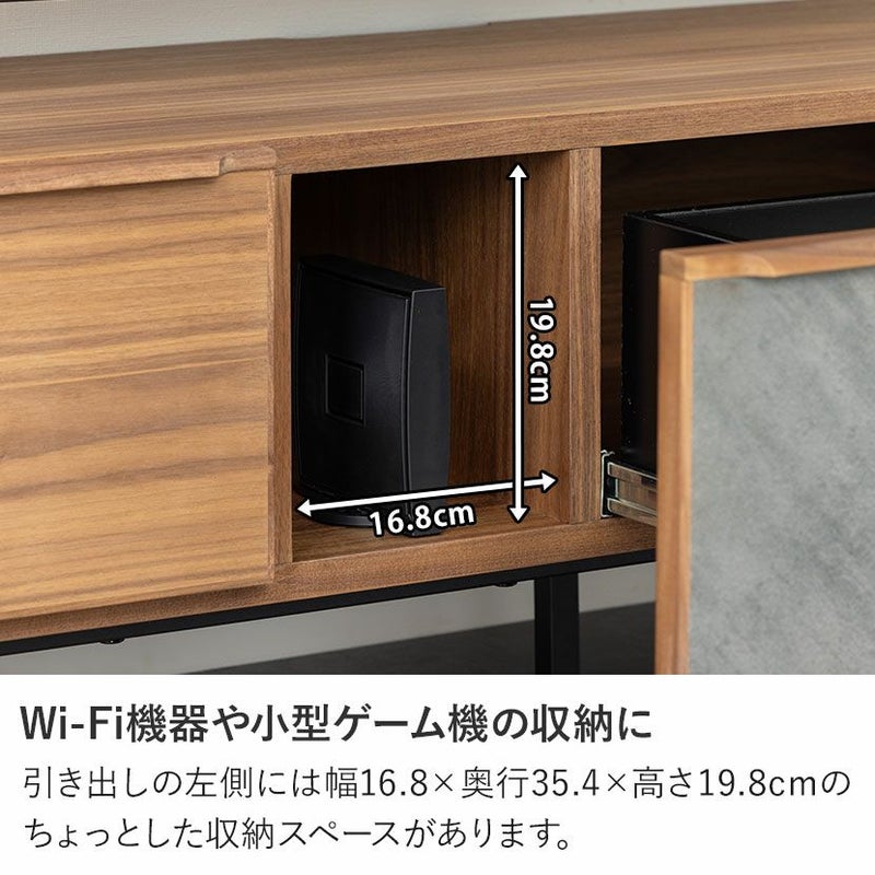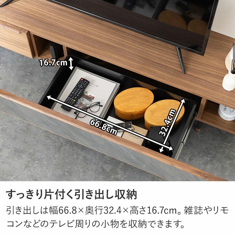 引き出しは幅66.8×奥行32.4×高さ16.7cm。雑誌やリモコンなどのテレビ周りの小物を収納できます。