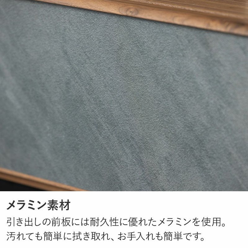 引き出しの前板には耐久性に優れたメラミンを使用。汚れても簡単に拭き取れ、お手入れも簡単です。