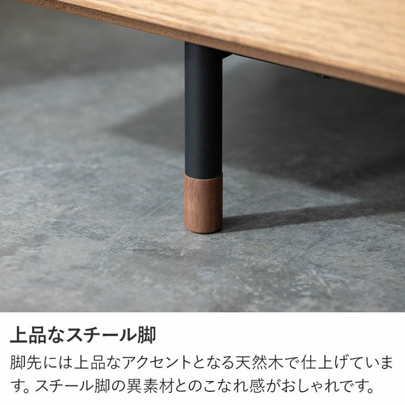 さりげない2トーンがデザインを際立たせ、木目×メラミン×スチールの異素材がこなれ感を演出します。