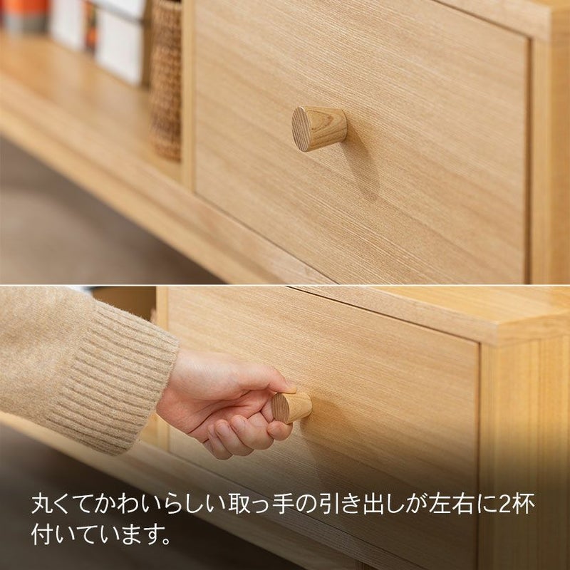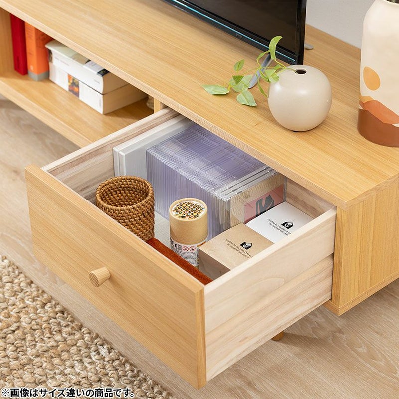 引き出しは深めの設計で、CDやDVD、リモコンなどの小物を収納できます。