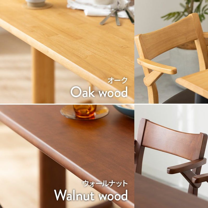 【設置無料】4人用 ダイニングテーブルセット(2本脚) 5点 シンプルスタンダード 木製 テーブル 肘付き コンパクト ダイニングチェア おしゃれ 北欧 (幅150cm 食卓テーブル×1 食卓椅子×4)