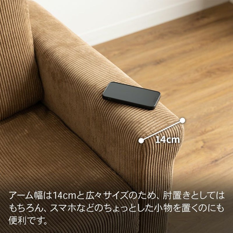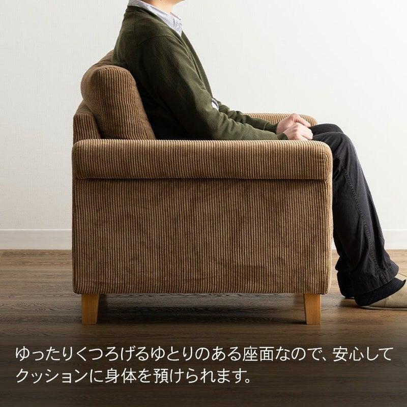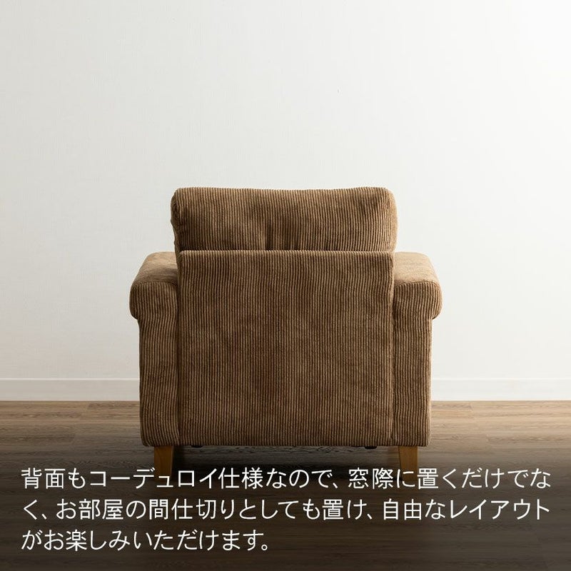 幅84cm 1人掛け コーデュロイ ソファ 2口コンセント付き 布張り ファブリック リビングソファ おしゃれ アメリカンヴィンテージ風 ラスティック ブラウン ルンバブル