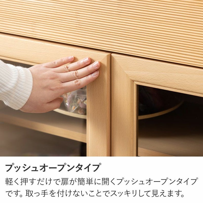 軽く押すだけで扉が簡単に開くプッシュオープンタイプです。取っ手を付けないことでスッキリして見えます。