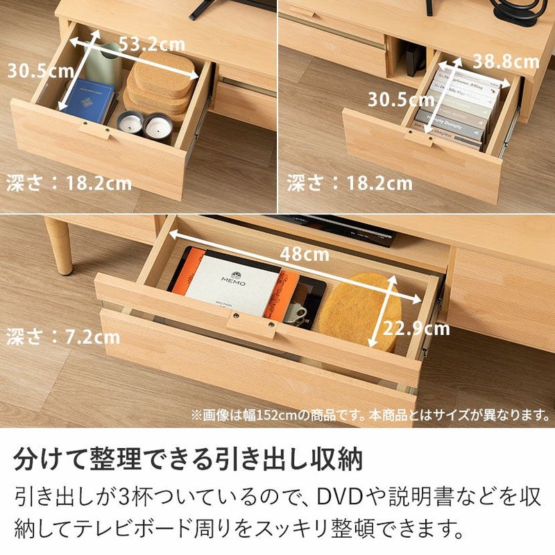 引き出しが3杯ついているので、DVDや説明書などを収納してテレビボード周りをスッキリ整頓できます。
