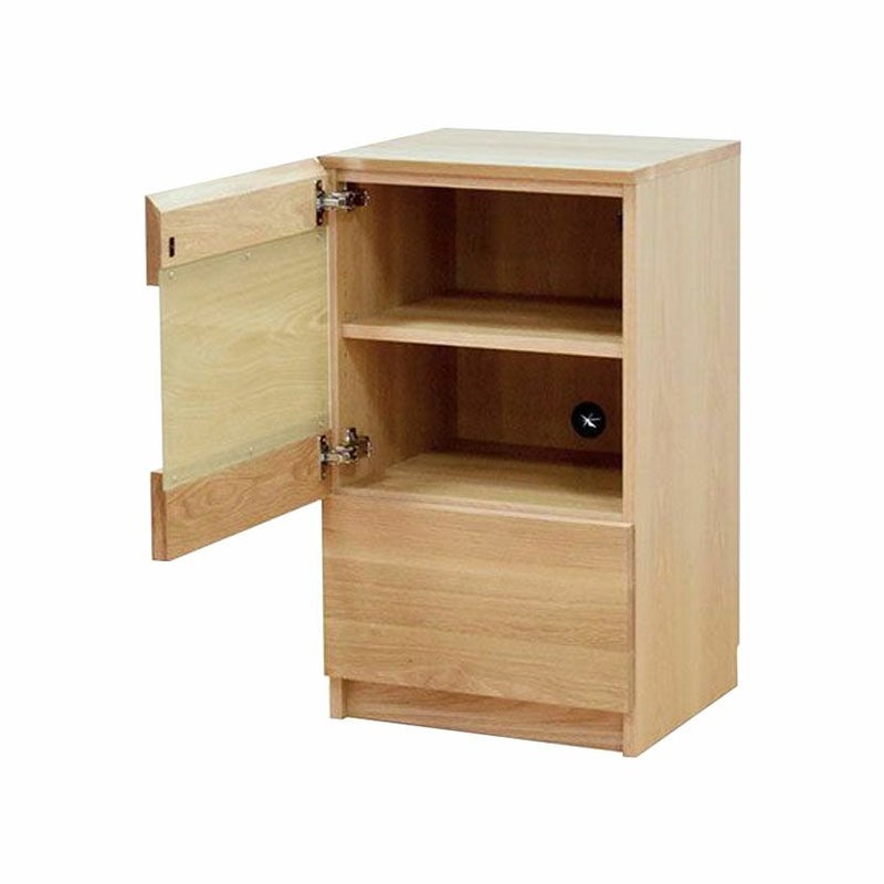 | 材質 | 天板・戸枠・前板 / オーク無垢材 外装 / 突板 内装 / プリント合板 鏡板 / 5mm強化ガラス(突板貼り) 引き出し内部 / 塩化ビニルシート 塗装 / ウレタン塗装 |