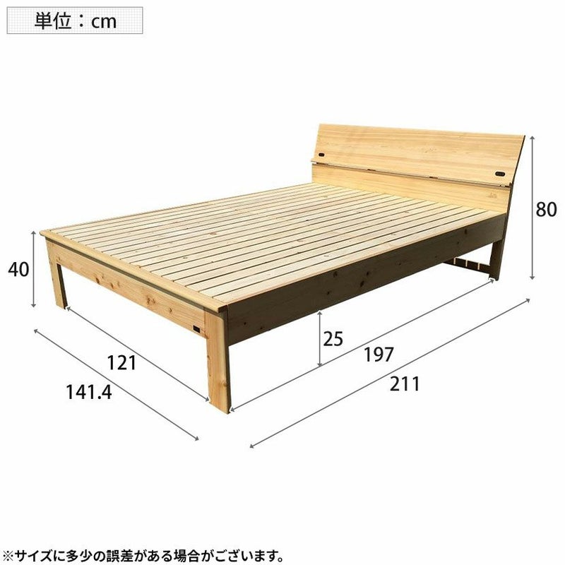 【設置無料】ダブルサイズ ベッドフレーム ヘッドフラットタイプ ヒノキ材 竹炭入り スライドコンセント付き
