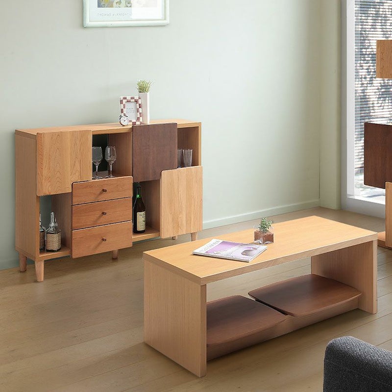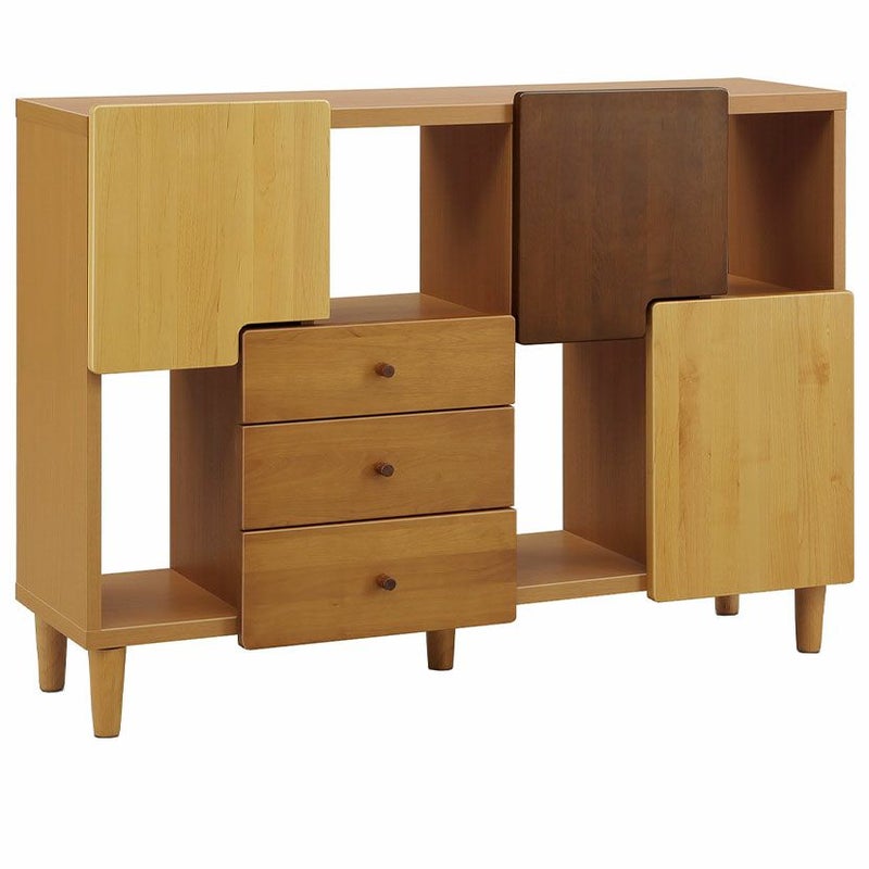●遊び心のあるウッド調のグラデーションカラーが特徴の、ワイドタイプの木製サイドボードです。