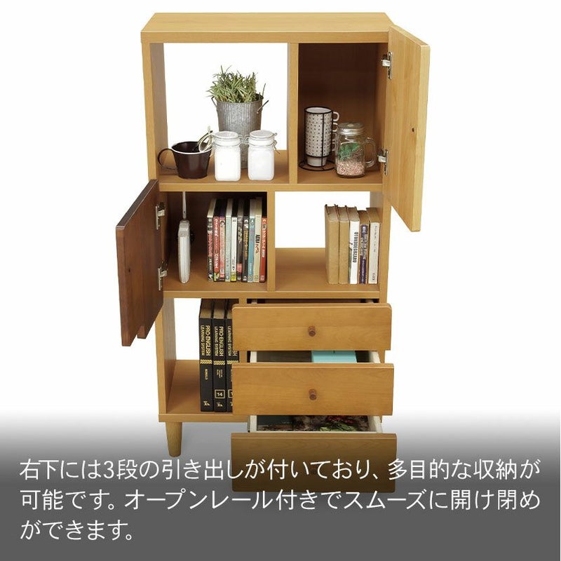 ●右下には3段の引き出しが付いており、多目的な収納が可能です。オープンレール付きでスムーズに開け閉めができます。
