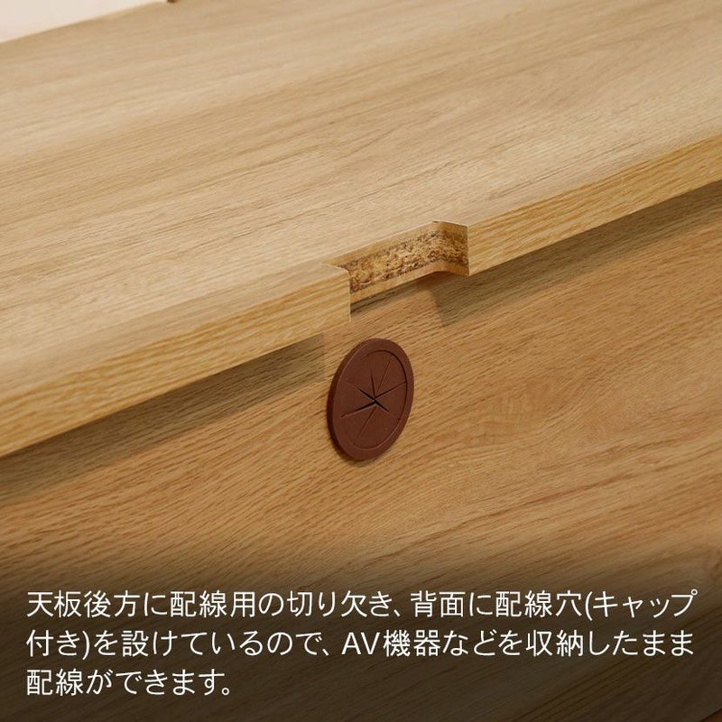 ●天板後方に配線用の切り欠き、背面に配線穴(キャップ付き)を設けているので、AV機器などを収納したまま配線ができます。