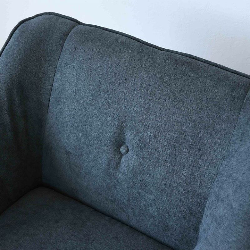 ベロア調の柔らかいファブリック生地と、滑らかな曲線フォルムが特徴的な1人掛けソファ。