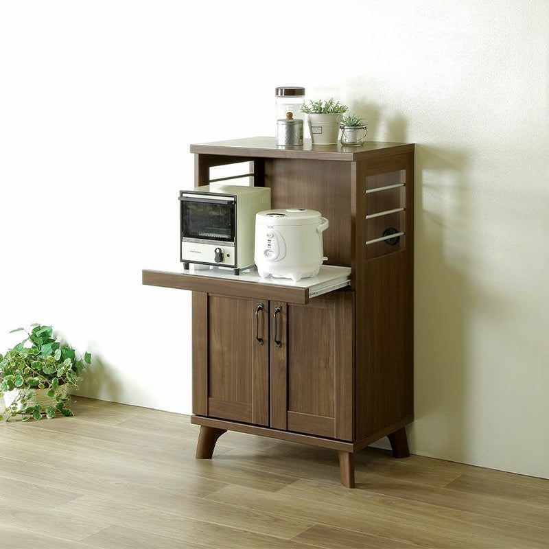 ローラーレールで置き台ごと引き出せるので、キッチン家電を使う時にとても便利です。