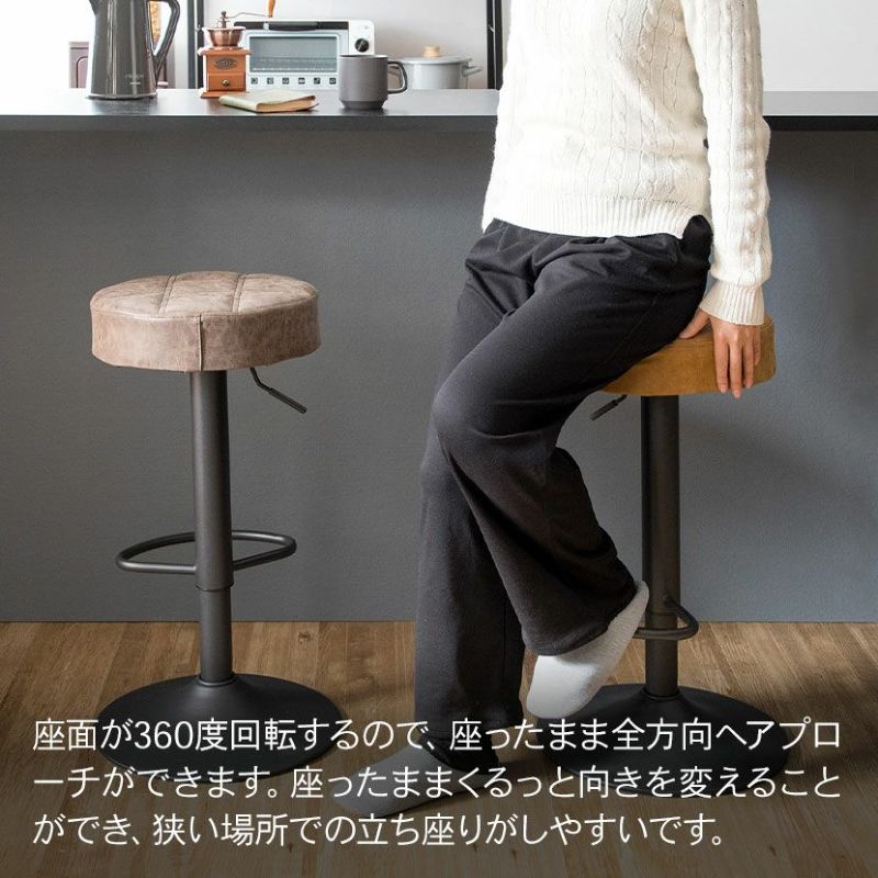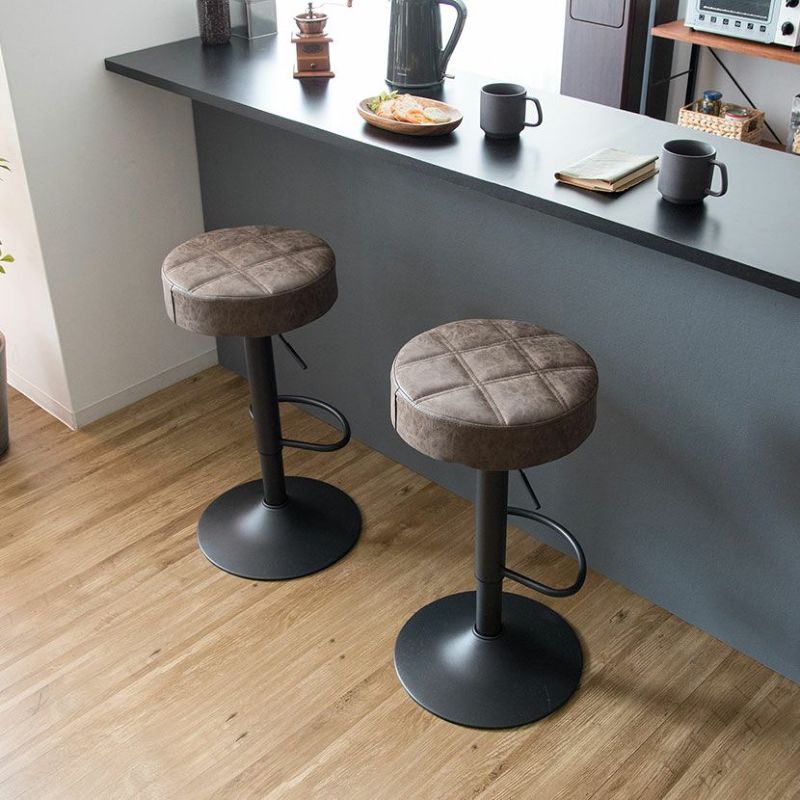 ●座面下のレバーを引くだけで、使うカウンターテーブルに合わせて無段階の高さ調節ができます。