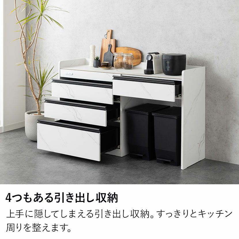 他の画像を見る 送料無料 送料無料 開梱設置付き 開梱設置付き 完成品 完成品 【設置無料】幅150cm 大理石調 キッチンカウンター ORV コンセント付き セラミック天板 引き出し キッチン収納 ゴミ箱 レンジ台 シンプル モダン 食器棚 おしゃれ 白 ホワイト グレー ¥ 78,900 税込 カートに入れる