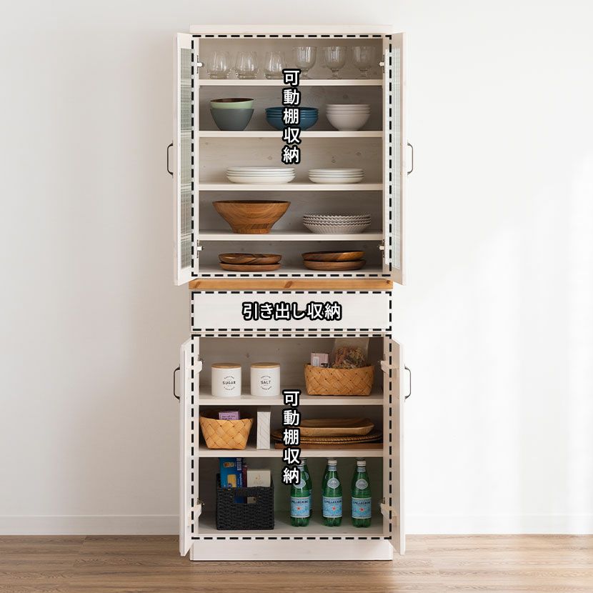 他の画像を見る 送料無料 送料無料 組立設置付き 組立設置付き 日本製 日本製 【設置無料】幅70cm 食器棚 日本製 木製 ガラス扉 引き出し付き 収納 コンパクト キッチンボード カップボード おしゃれ ナチュラル フレンチカントリー ダイニング 白 ホワイト ¥ 62,900 税込 カートに入れる