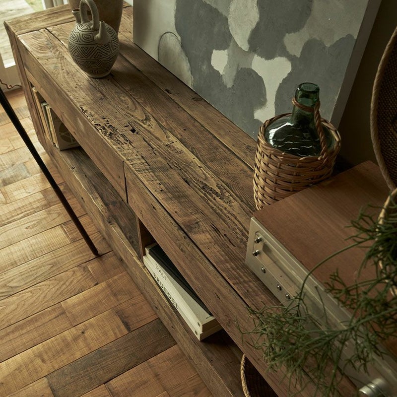 味わい深い天然木ならではの美しい木目や、ヴィンテージ感のある木の風合いがお部屋に高級感を与えます。高級感がありながらも、暮らしに馴染みやすいやさしいデザインが人気のシリーズ商品です。