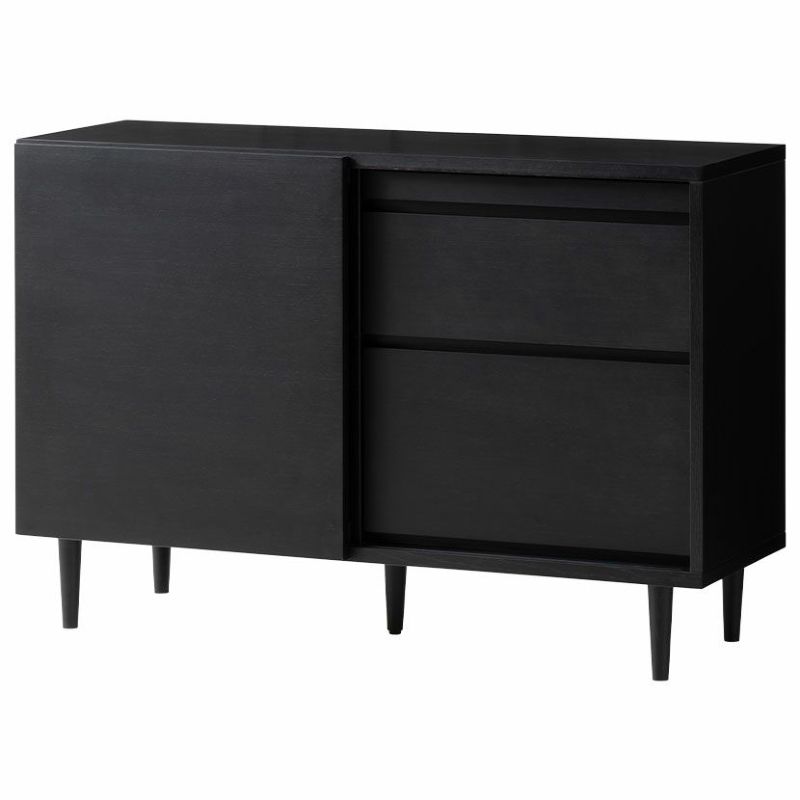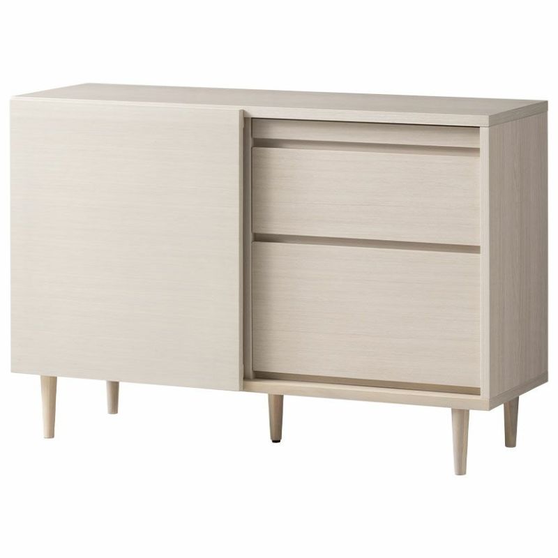 2段の引き出しは、それぞれ高さの異なるリビングやダイニング周りの小物を収納するのに適しています。