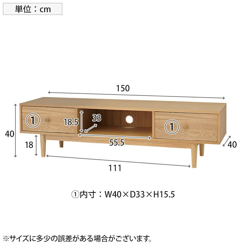 幅150cm テレビボード TIM-32 テレビ台 脚付き 引き出し付き 配線穴付き 収納 シンプル 北欧風 天然木 オーク ローボード