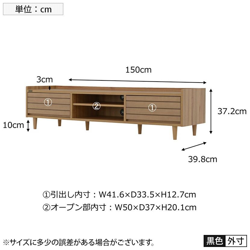 幅150cm ローボード TWICE (トワイス) ~50型対応 木目調 脚付き 引出し付き オープン収納 テレビ台 テレビボード TV台 TVボード ブラウン アイボリー ホワイト