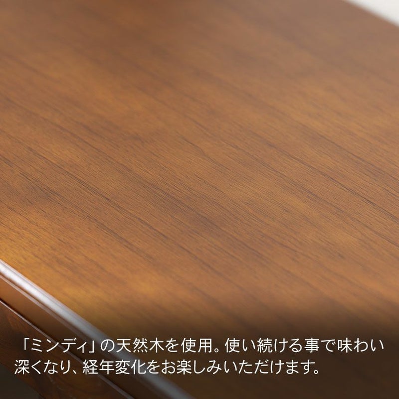 硬く頑丈という特徴から彫刻材としても使われております。またミンディ材を使用した家具は使い続ける事で味わい深くなり、経年変化をお楽しみ頂けます。
