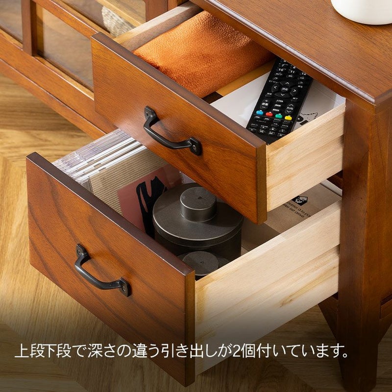 味わい深い天然木ならではの美しい木目や、ヴィンテージ感のある木の風合いがお部屋に高級感を与えます。高級感がありながらも、暮らしに馴染みやすいやさしいデザインが人気のシリーズ商品です。