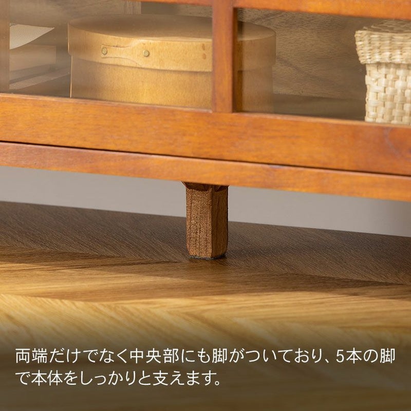 本体左側に、収納した物が確認できるクリアなガラス引き戸収納が付いています。