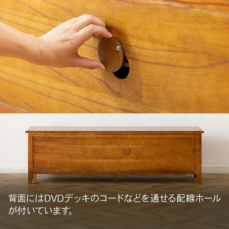 背面には配線ホールがあるので、DVDデッキなどを収納したまま配線が可能です。