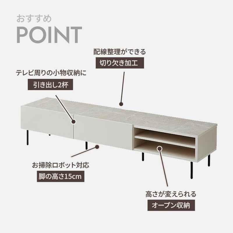 レコーダーやゲーム機、サウンドバーなどのAV機器を設置するのに便利なオープンスペースを備えています。